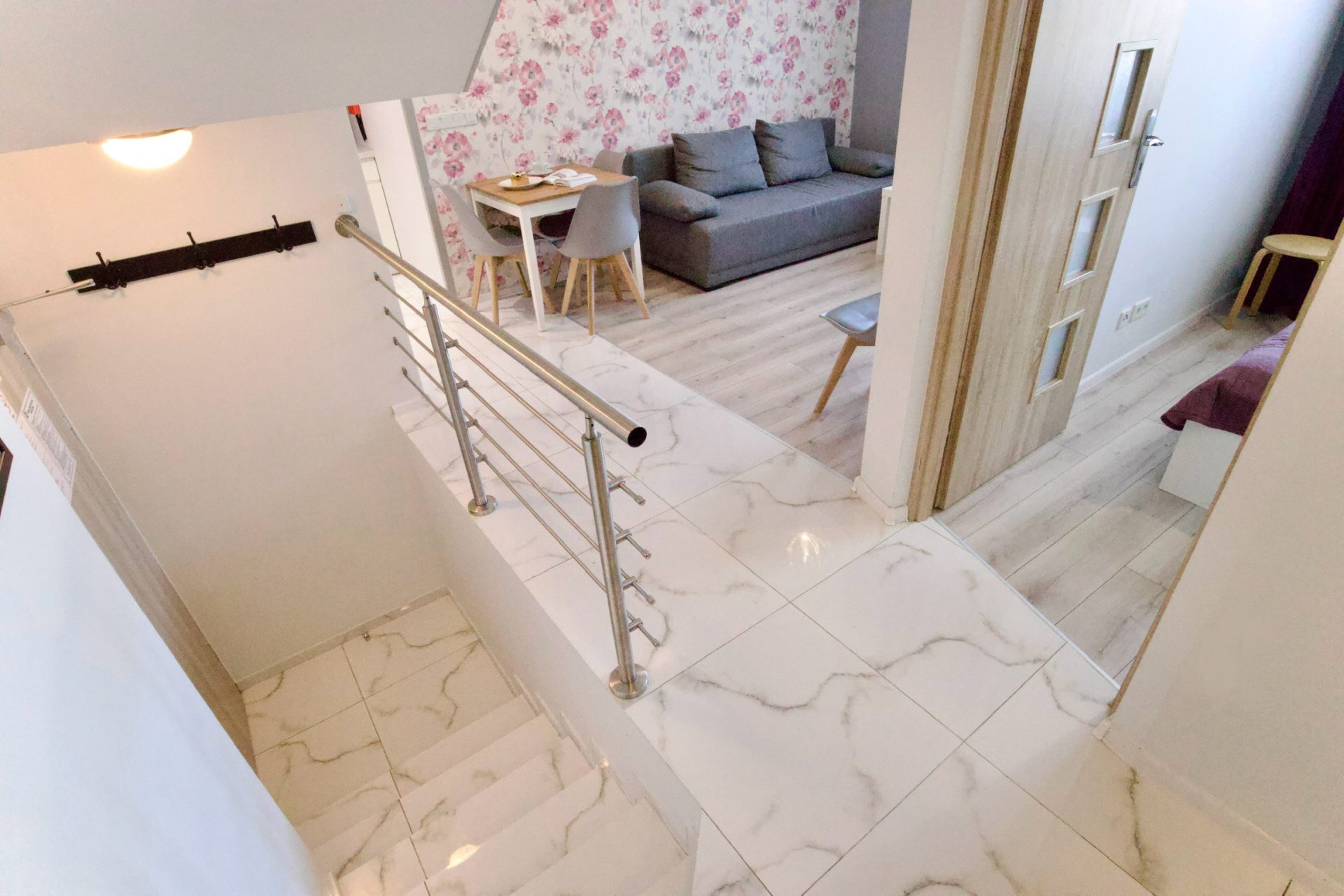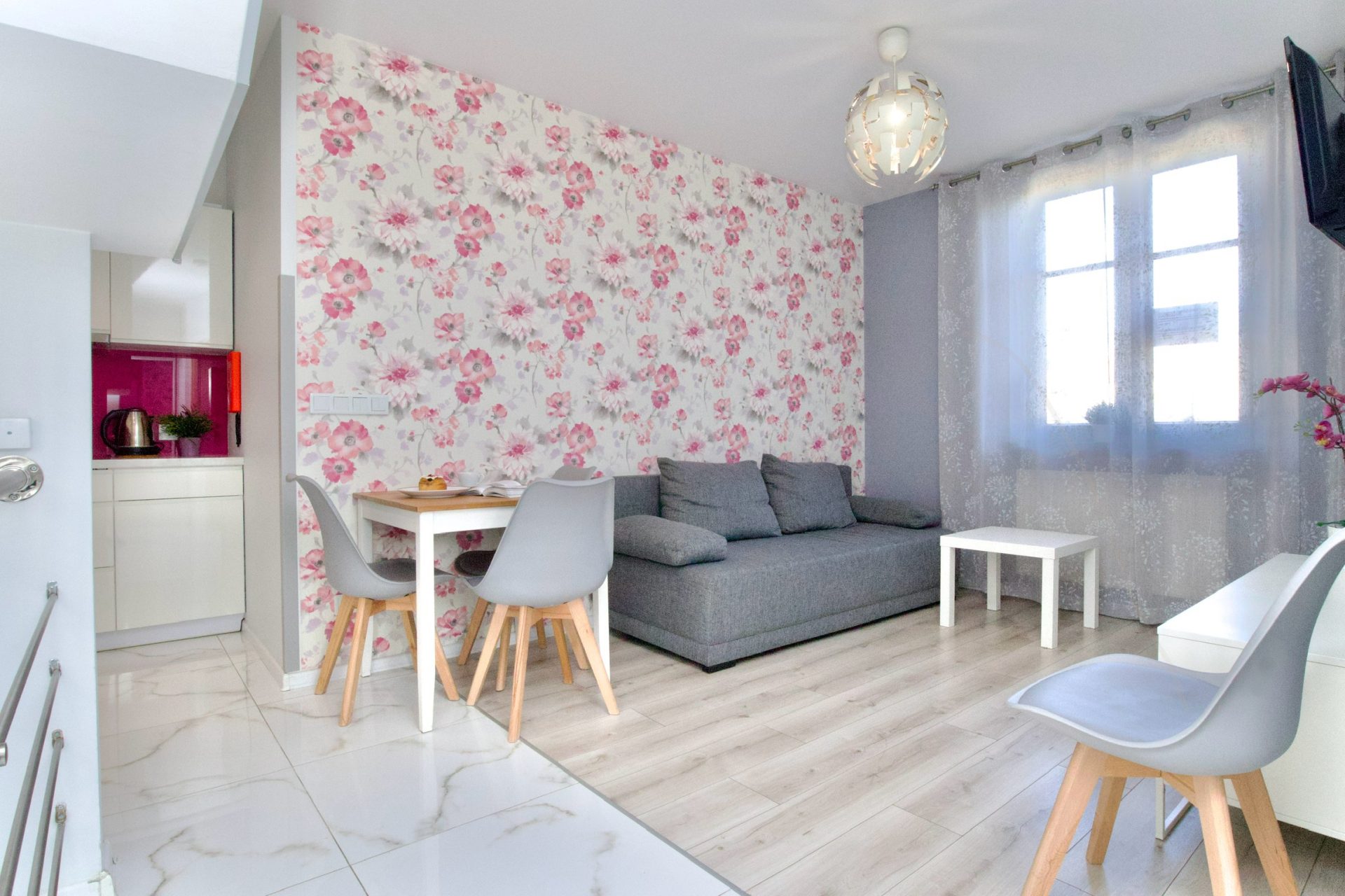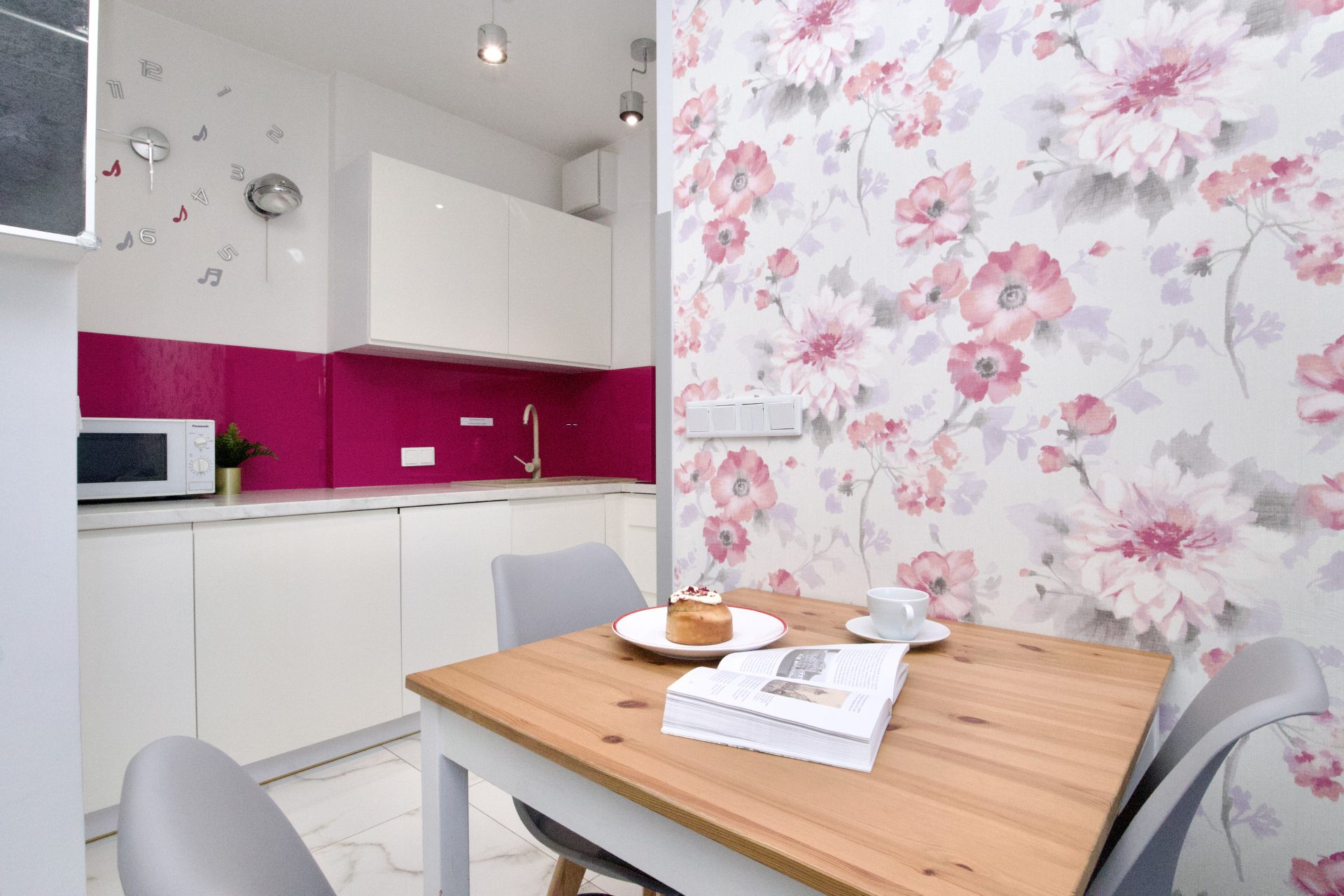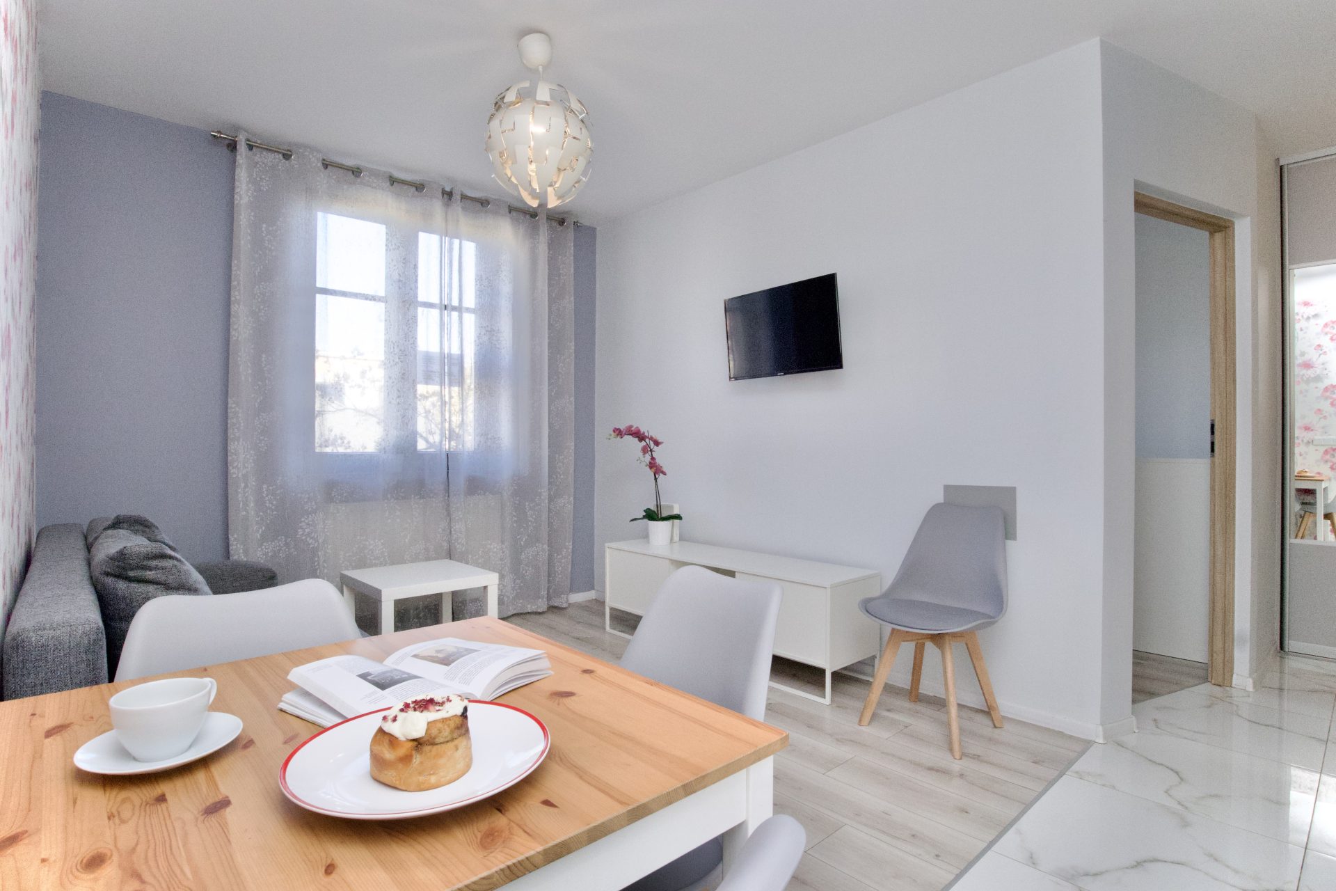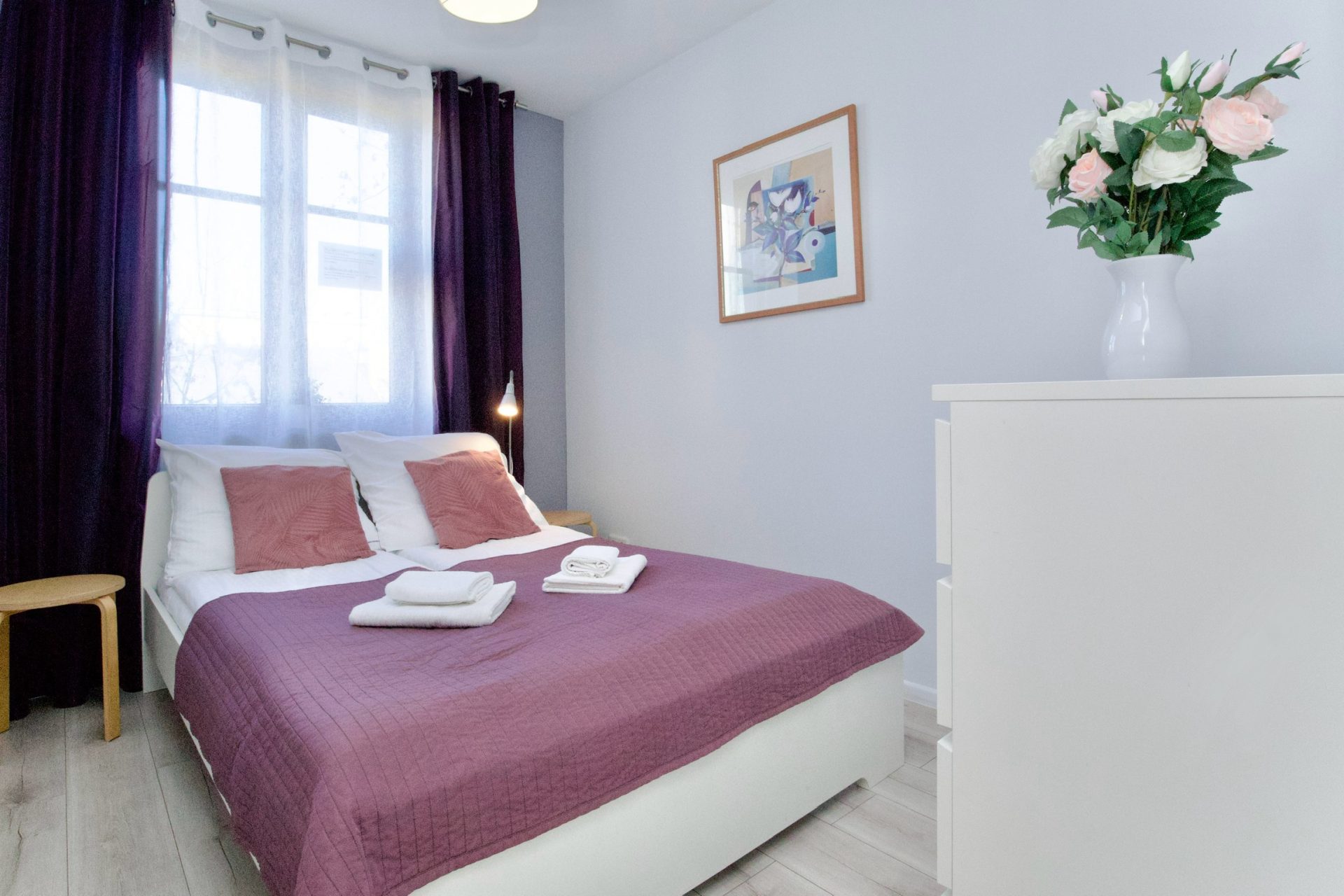 A 32m2 four-person apartment is located on the 3rd floor in a building with an elevator, consisting of a living room with a kitchen and dining area, a bedroom and a bathroom. The apartment is equipped with a table with chairs, a double bed, a double sofa bed, a hair dryer, an iron, TV, Wi-Fi, necessary utensils and dishes in the kitchen. Bed linen, towels and soap are provided. The windows of the apartment overlook Krowoderska Street.