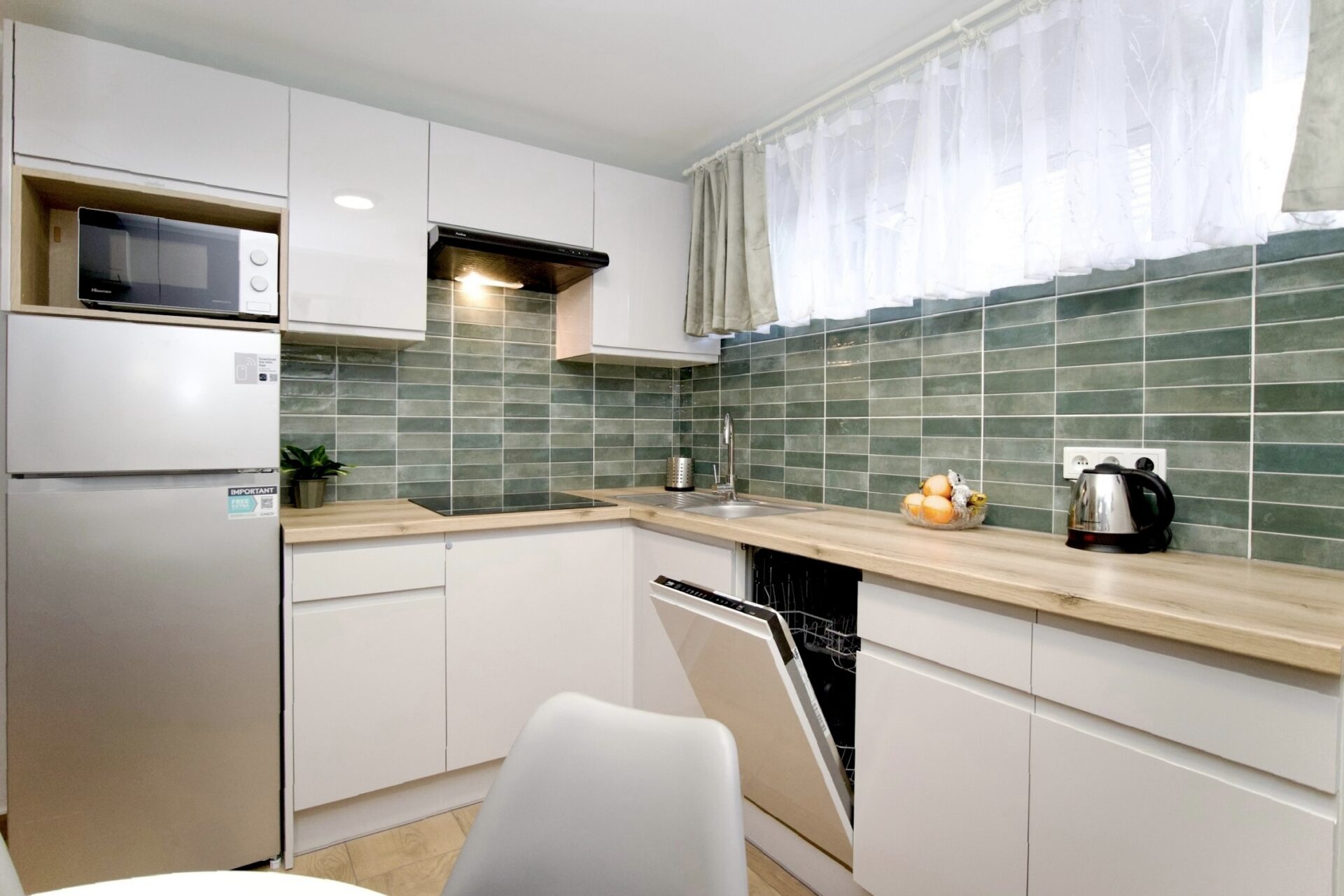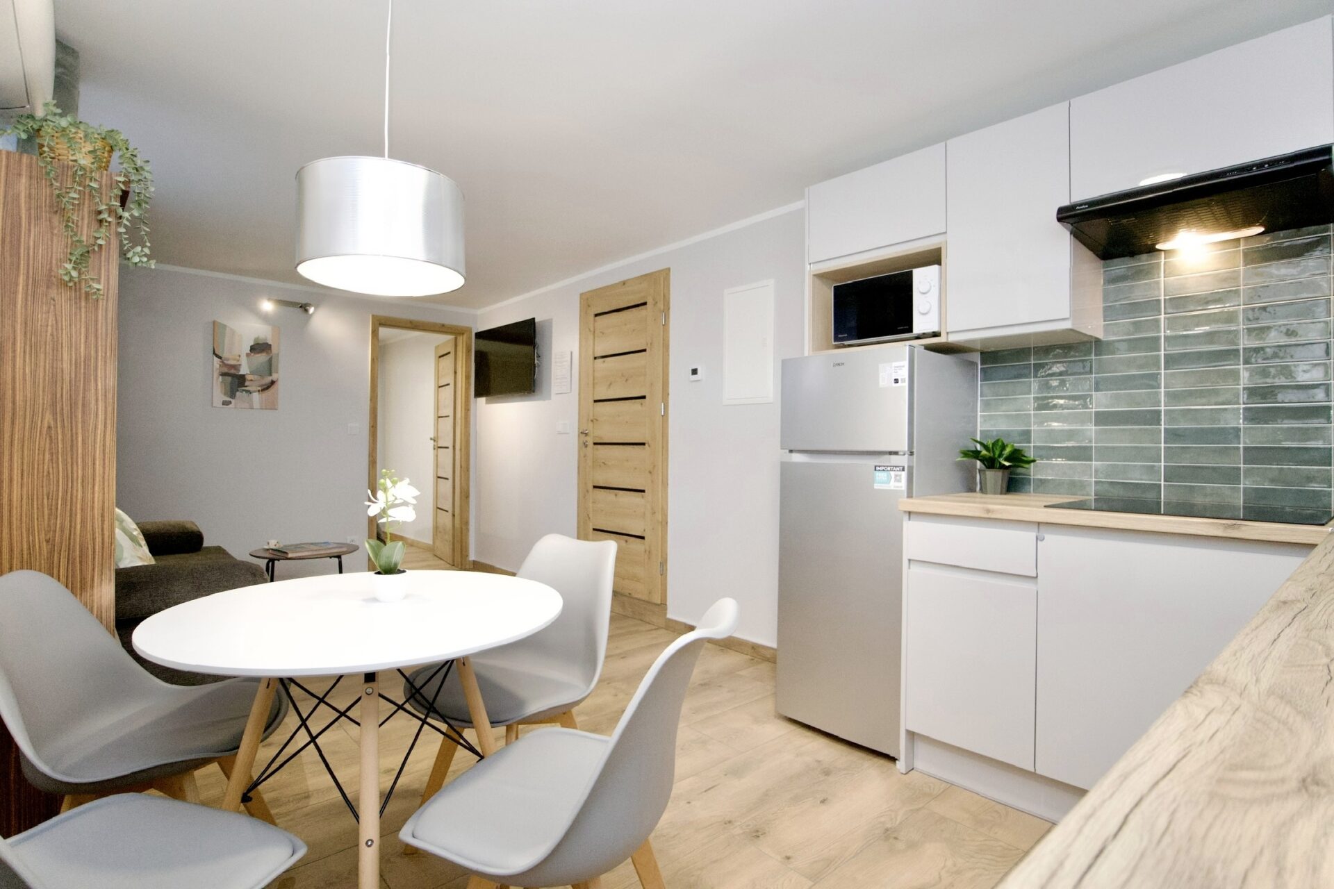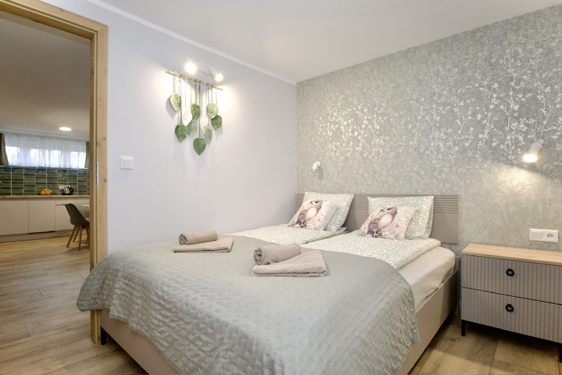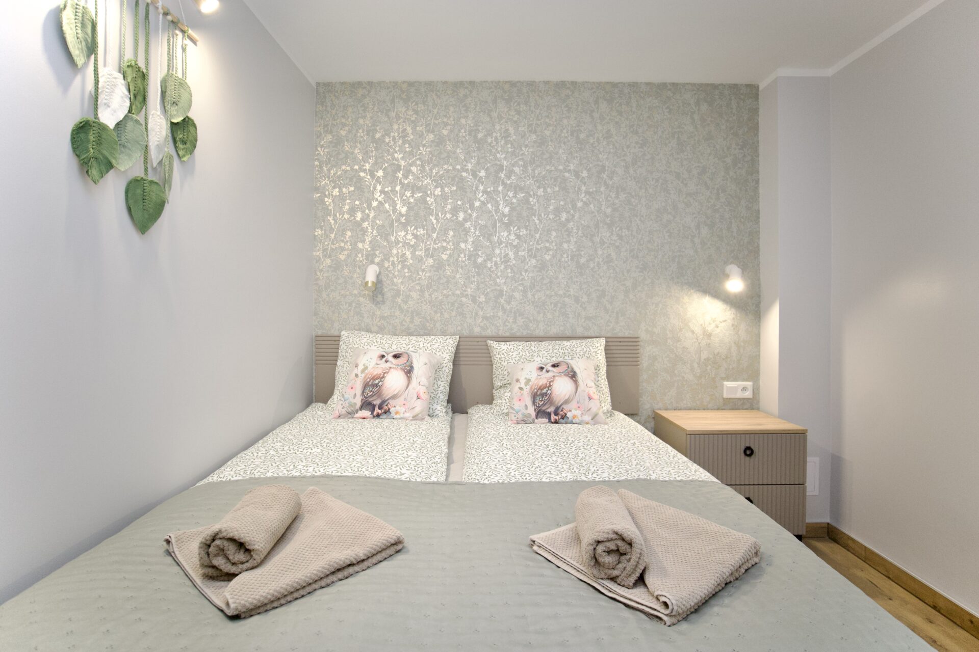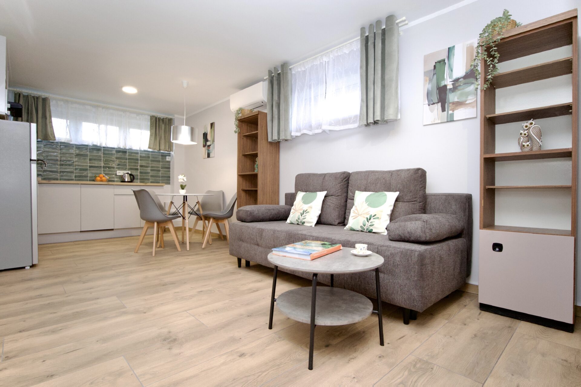 Klimatyzowany apartament dla 4 osób z osobną sypialnią, aneksem kuchennym i łazienką. Idealny dla rodzin z dziećmi. W apartamencie znajdują się wszystkie niezbędne udogodnienia: klimatyzacja, pralka, zmywarka, naczynia i sztućce. Apartament położony na parterze, z wyjściem na prywatny taras. W cenie jest miejsce parkingowe dla samochodu.
