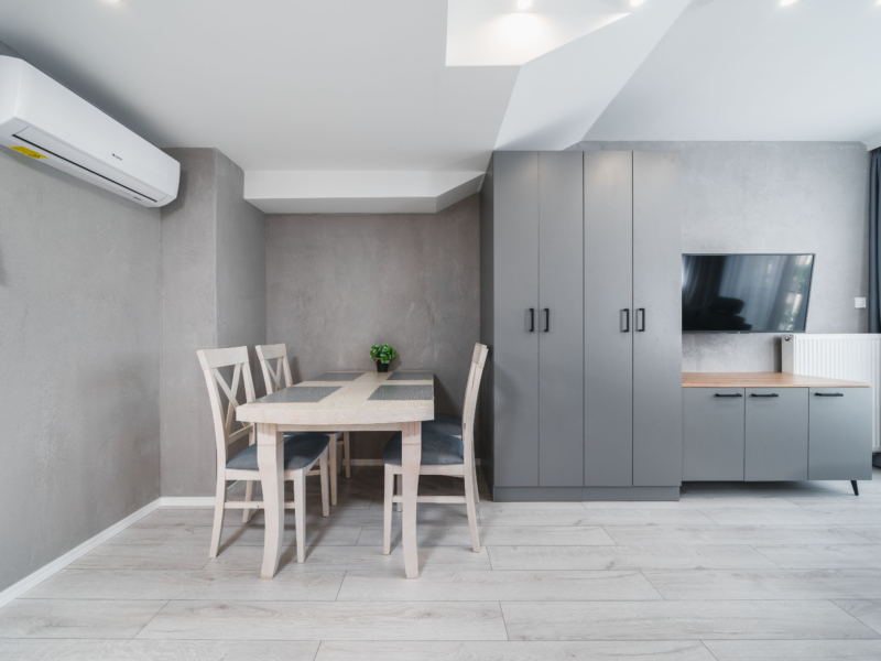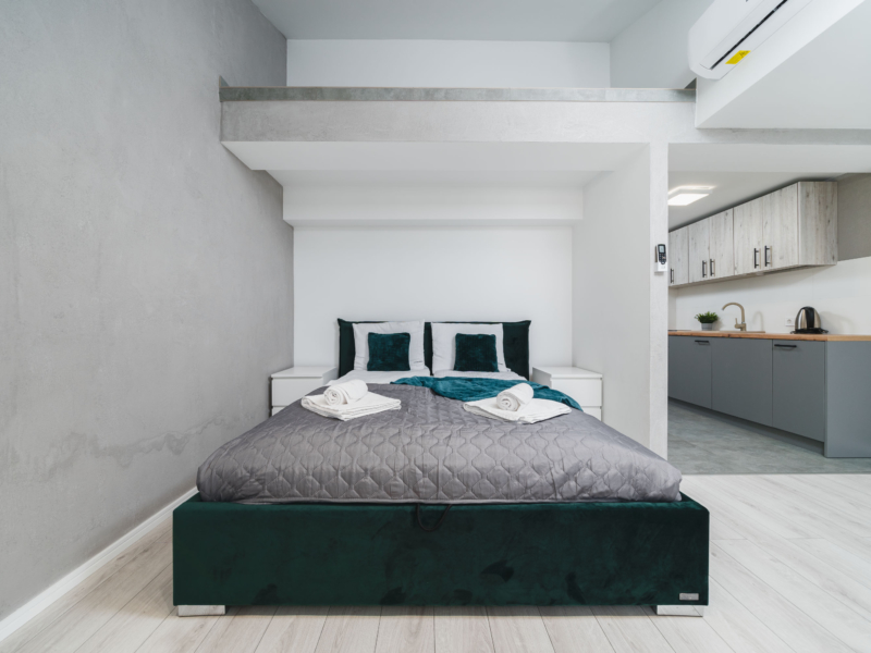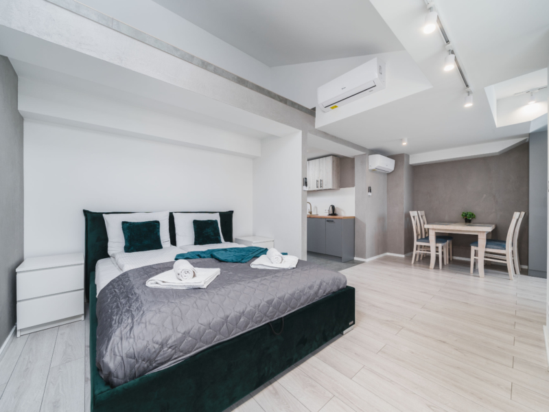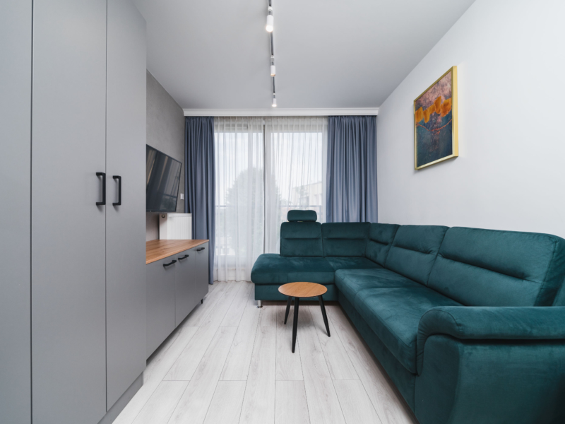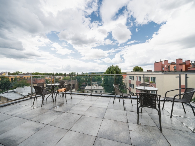 Czteroosobowy, klimatyzowany apartament typu studio o powierzchni 23m² na 4 piętrze, z widokiem na dziedziniec. Cichy pokój wyposażony jest w podwójne łóżko oraz podwójną sofę rozkładaną, stolik z krzesłami, klimatyzację, TV, suszarkę do włosów, pościel, ręczniki, mydło oraz prywatną łazienkę z prysznicem. W skład aneksu kuchennego znajdującego się w mieszkaniu wchodzi: lodówka, płyta indukcyjna, czajnik, mikrofala oraz wszelkie niezbędne naczynia. Do dyspozycji gości jest bezpłatne Wi-Fi, żelazko i deska do prasowania oraz pralką. Dodatkowo Goście mogą korzystać z przynależnego tarasu.