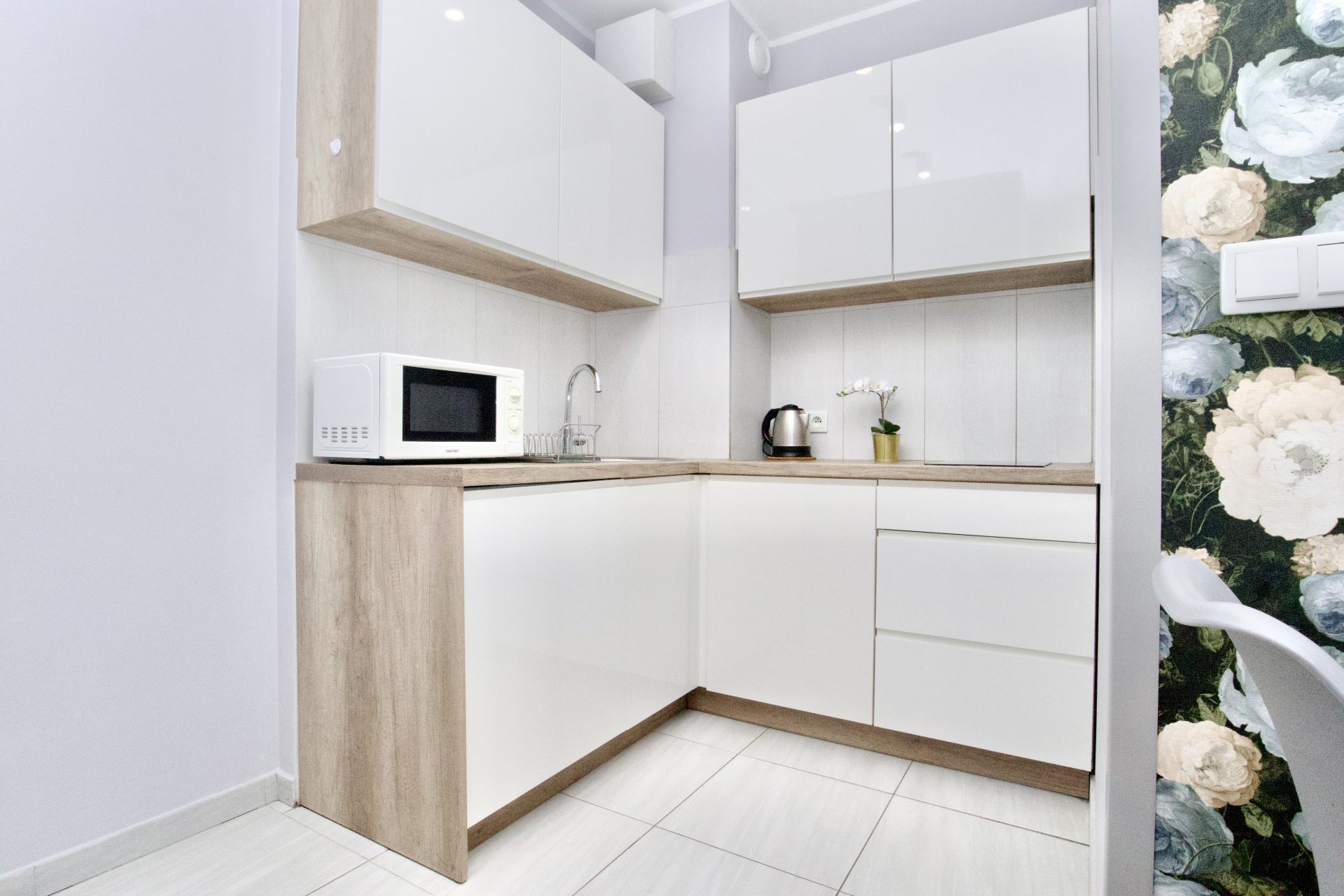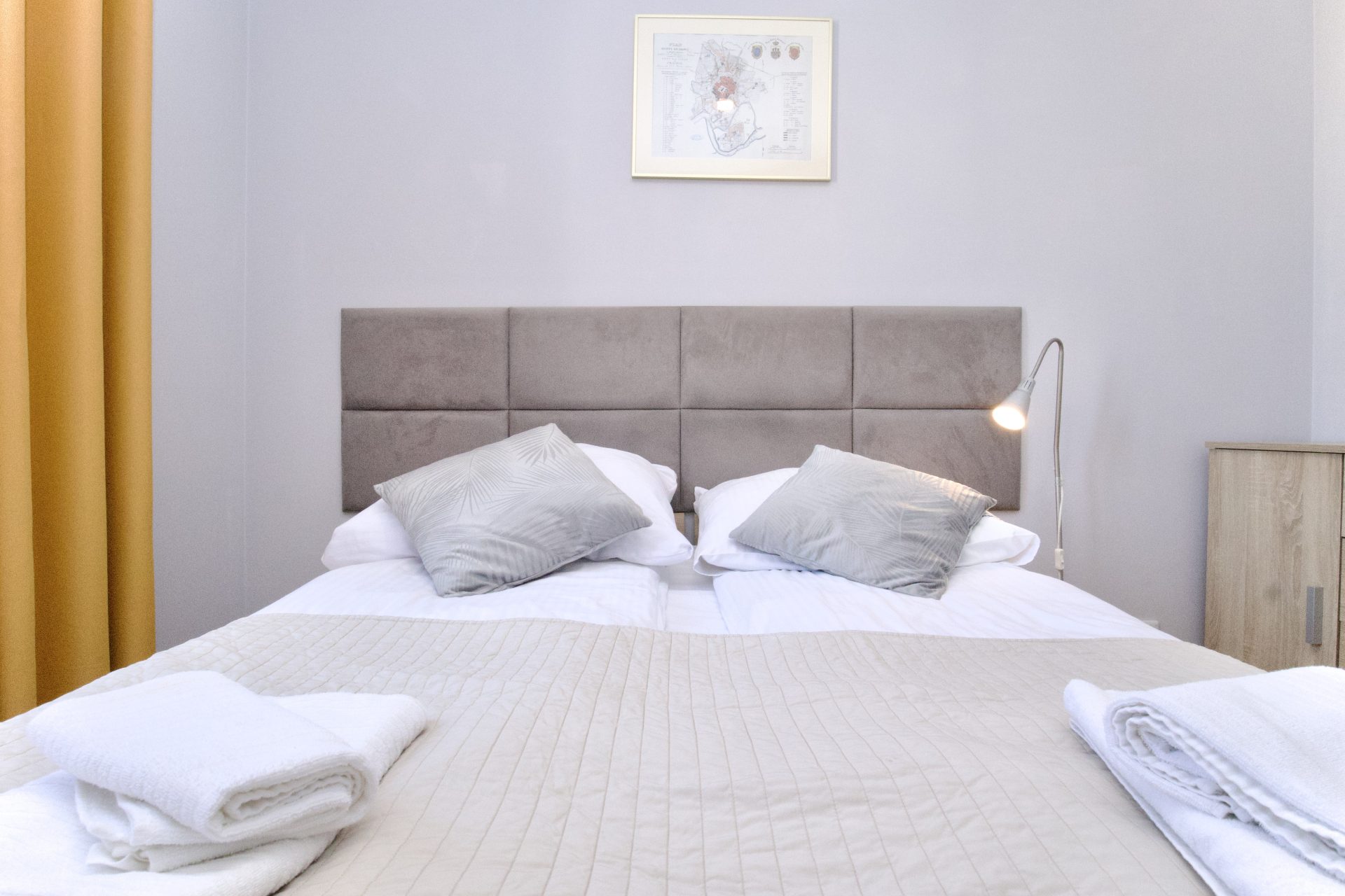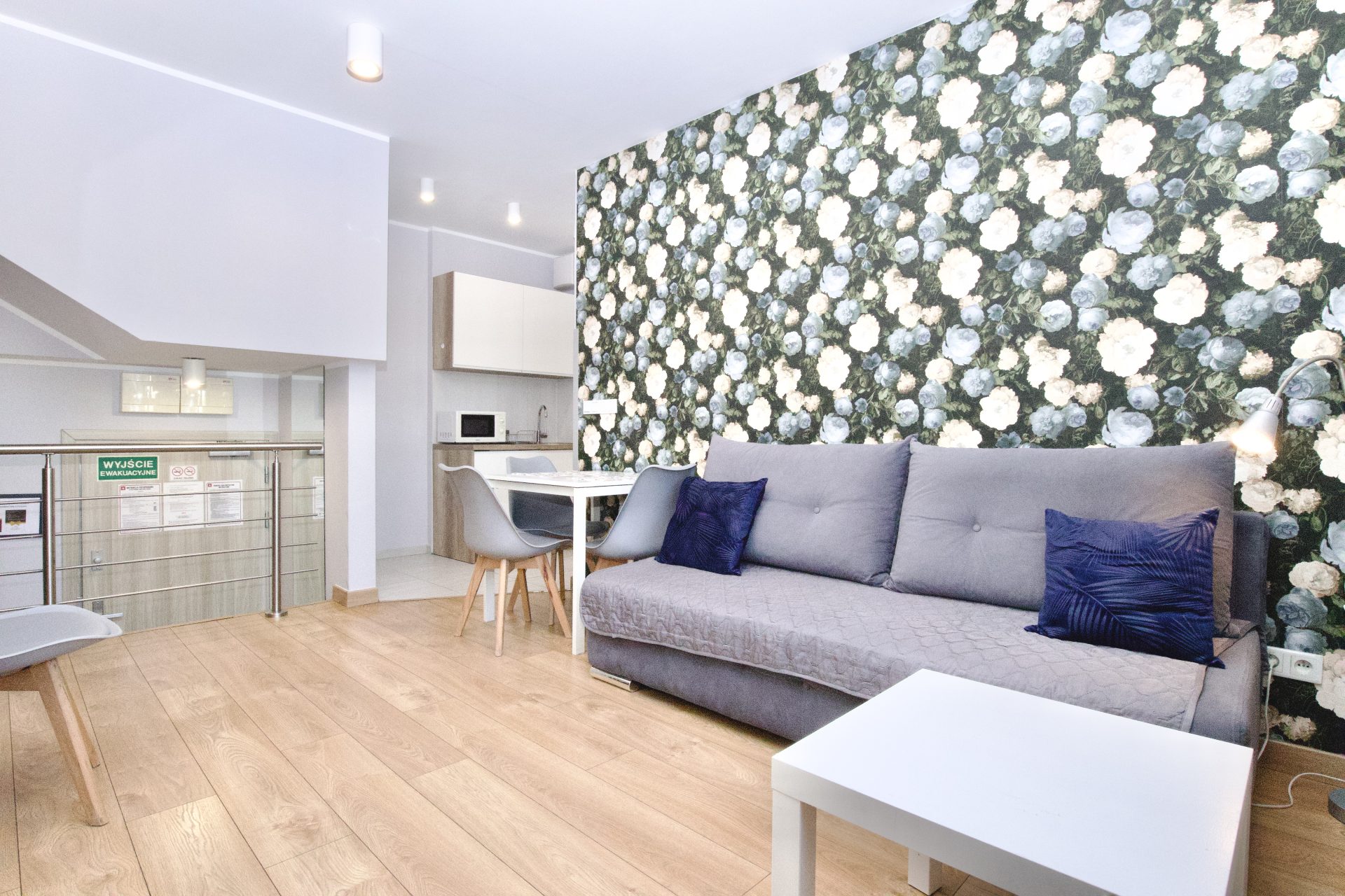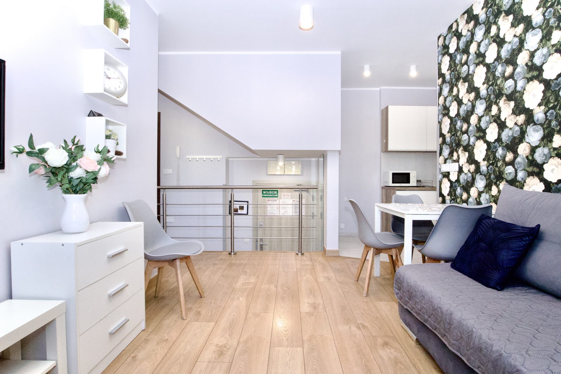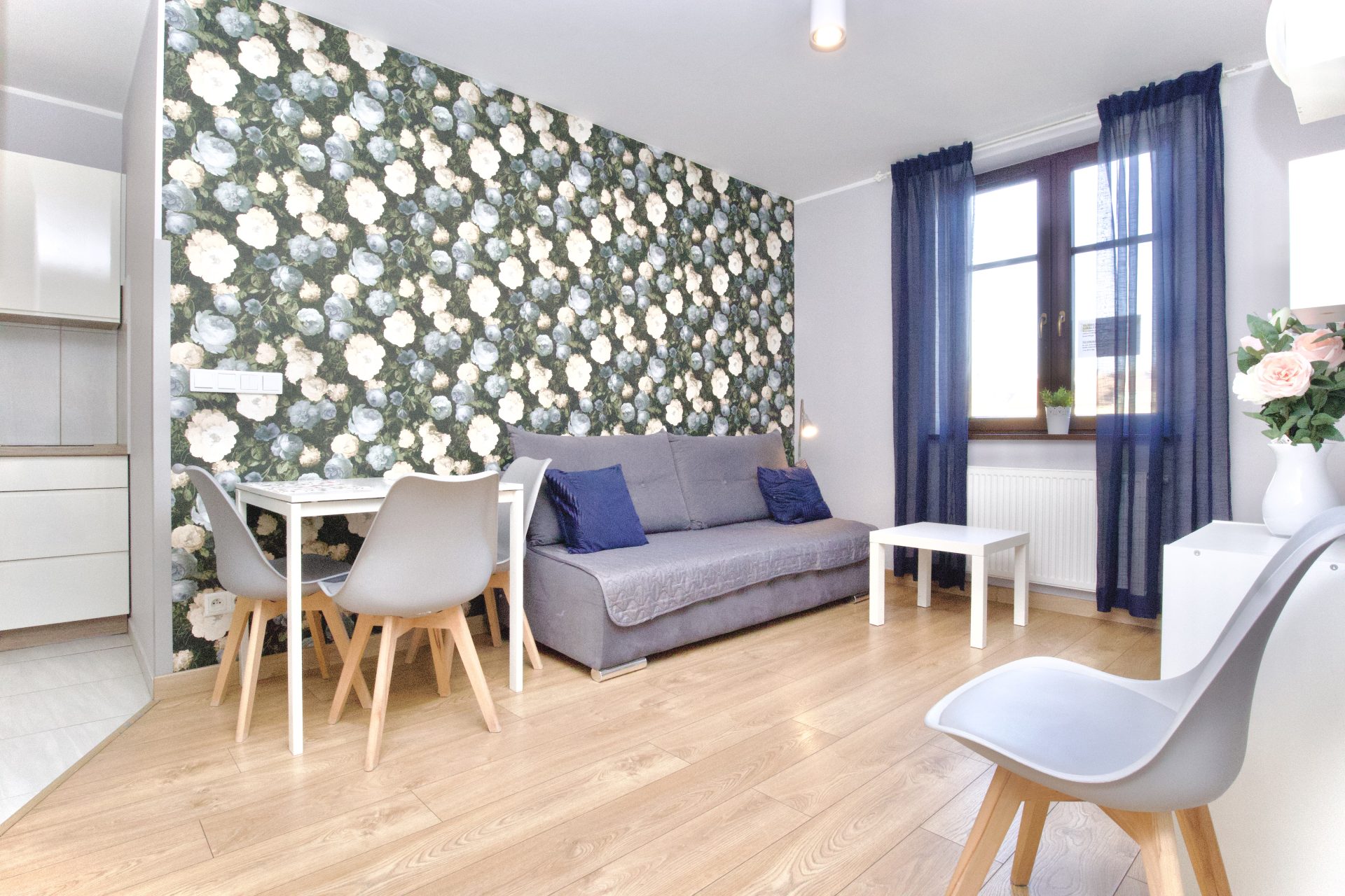 Apartament czteroosobowy o powierzchni 32m2 mieści się na IV piętrze w budynku z windą, Mieszkanie składa się z salonu z aneksem kuchennym i częścią jadalną, sypialni oraz łazienki. Wyposażone jest w stół z krzesłami, podwójne łóżko, podwójną sofę, suszarkę do włosów, żelazko, Tv, Wi-Fi, aneks kuchenny wyposażony jest w niezbędne narzędzia i naczynia. Zapewnione są pościele, ręczniki oraz mydło. Okna mieszkania wychodzą na ulicę Krowoderską.