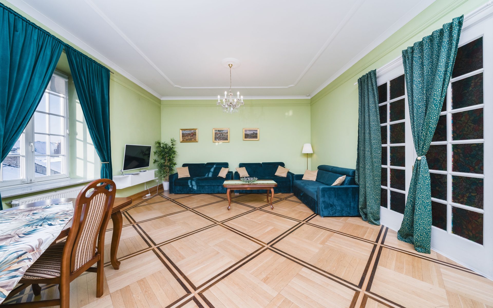 Pokój o powierzchni 40m2, znajdujący się na III piętrze słynnego Pałacu Pod Baranami. Pokój dwuosobowy ze wspólną łazienką z pokojem nr 2 i wspólną kuchnią – w pełni wyposażoną. Znajdziemy w niej lodówkę, płytę indukcyjną wraz z piekarnikiem, zmywarkę, mikrofalówkę, czajnik oraz wszelkie potrzebne naczynia. W łazience jest prysznic oraz toaleta oraz pralka. Do dyspozycji gości jest suszarka do włosów, żelazko, deska do prasowania, komplet pościeli i ręczników oraz mydło.